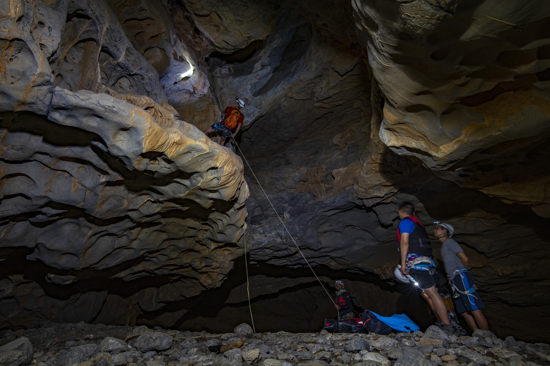 It is considered to be one of the longest caves in the Sultanate and is distinct with its various rock formations, as well as its narrow passages. We will need to abseil as well as ascend a few times. We start our adventure at the village of Hoota where we make our way down the wadi to the entrence of the cave, then we abseil down and enjoy the formations. We will need to go through narrow passages as well and climb and descend in the cave until we reach the first pool of water. There we will see the blind fish and we will swim with them, then the adventure will end in lower exit of the cave.