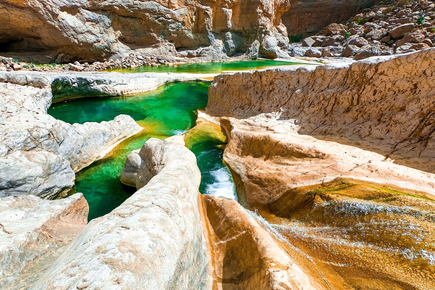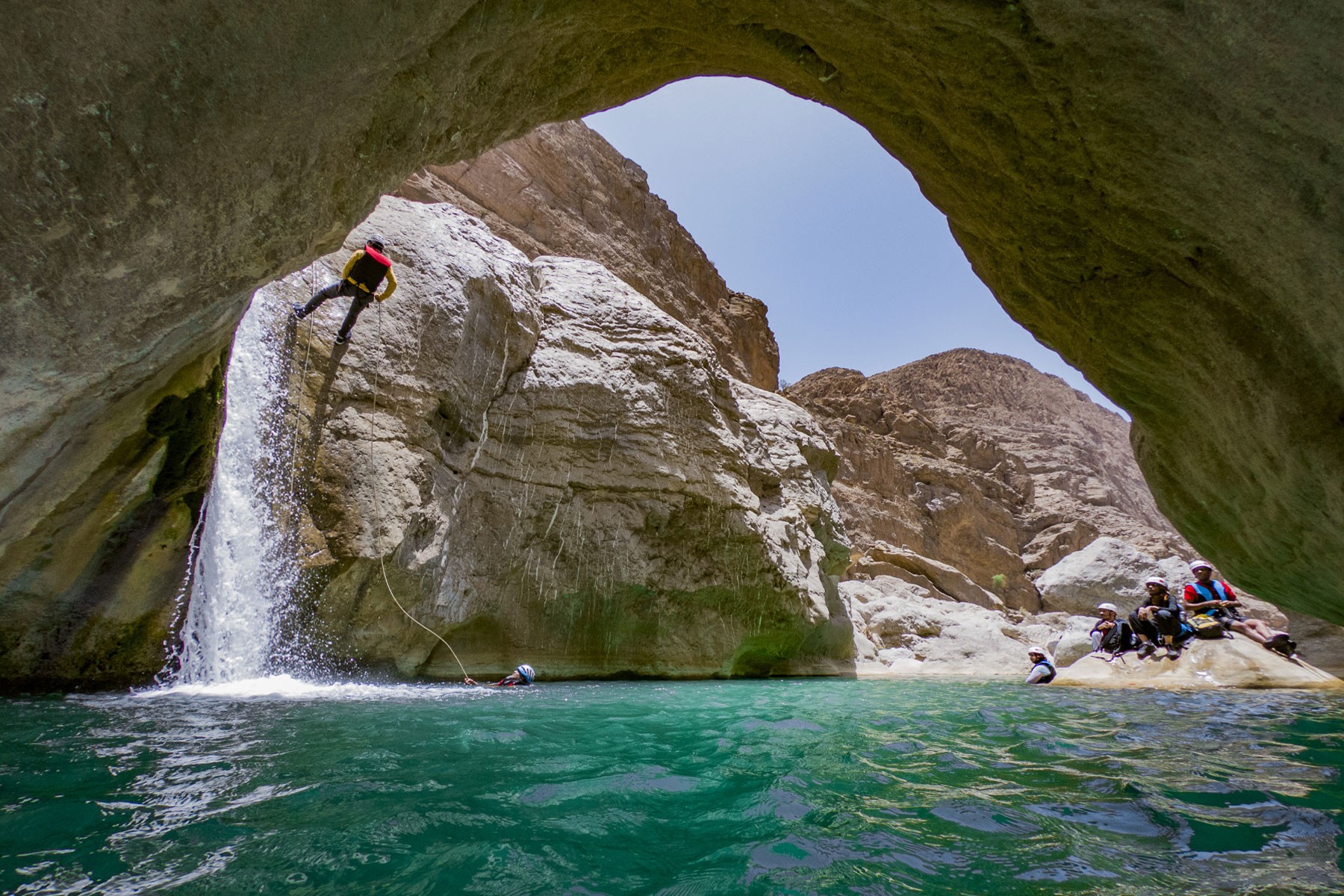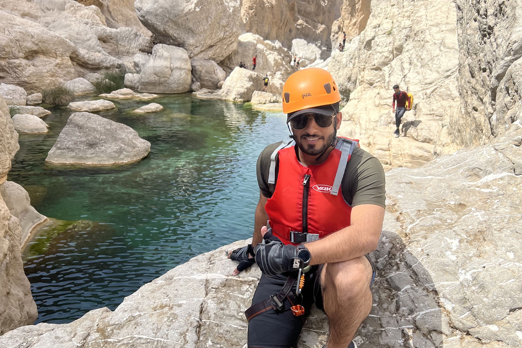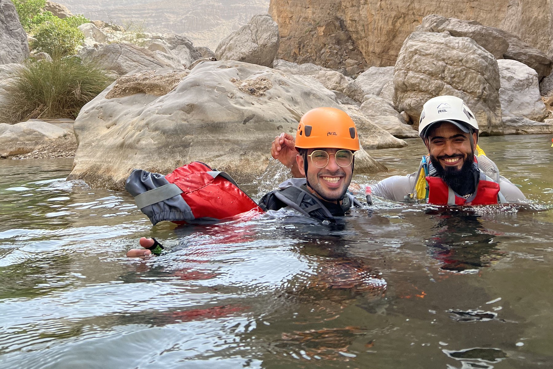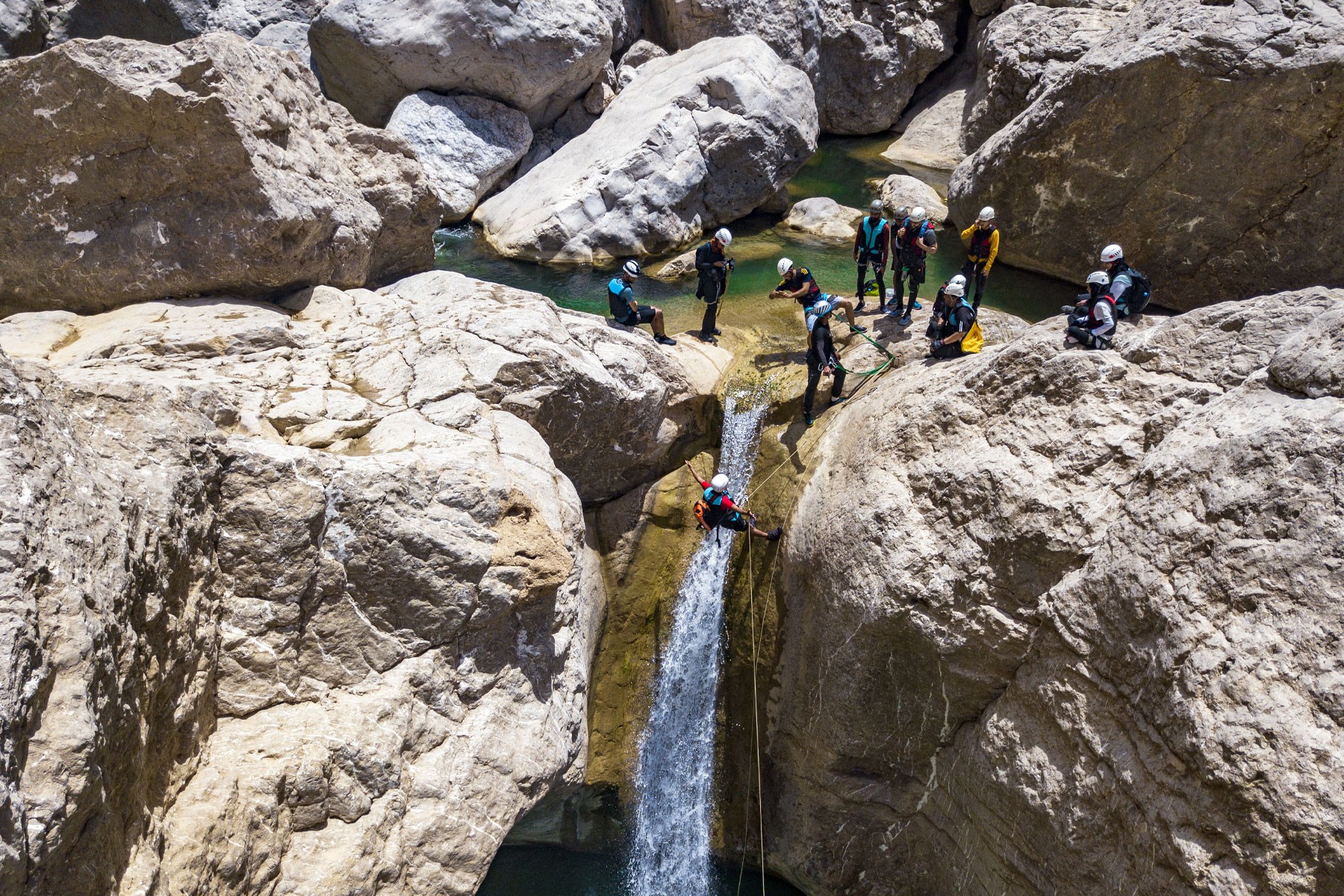 We start our adventure from the village of Bidh'ah which connects us to the beginning of the wadi. We pass by several water pools and waterfalls as high as 10 meters. The adventure is mostly scrambling in the wadi and swimming until we reach the natural water park. We will take a break there and enjoy the place then make our way back to the starting point.