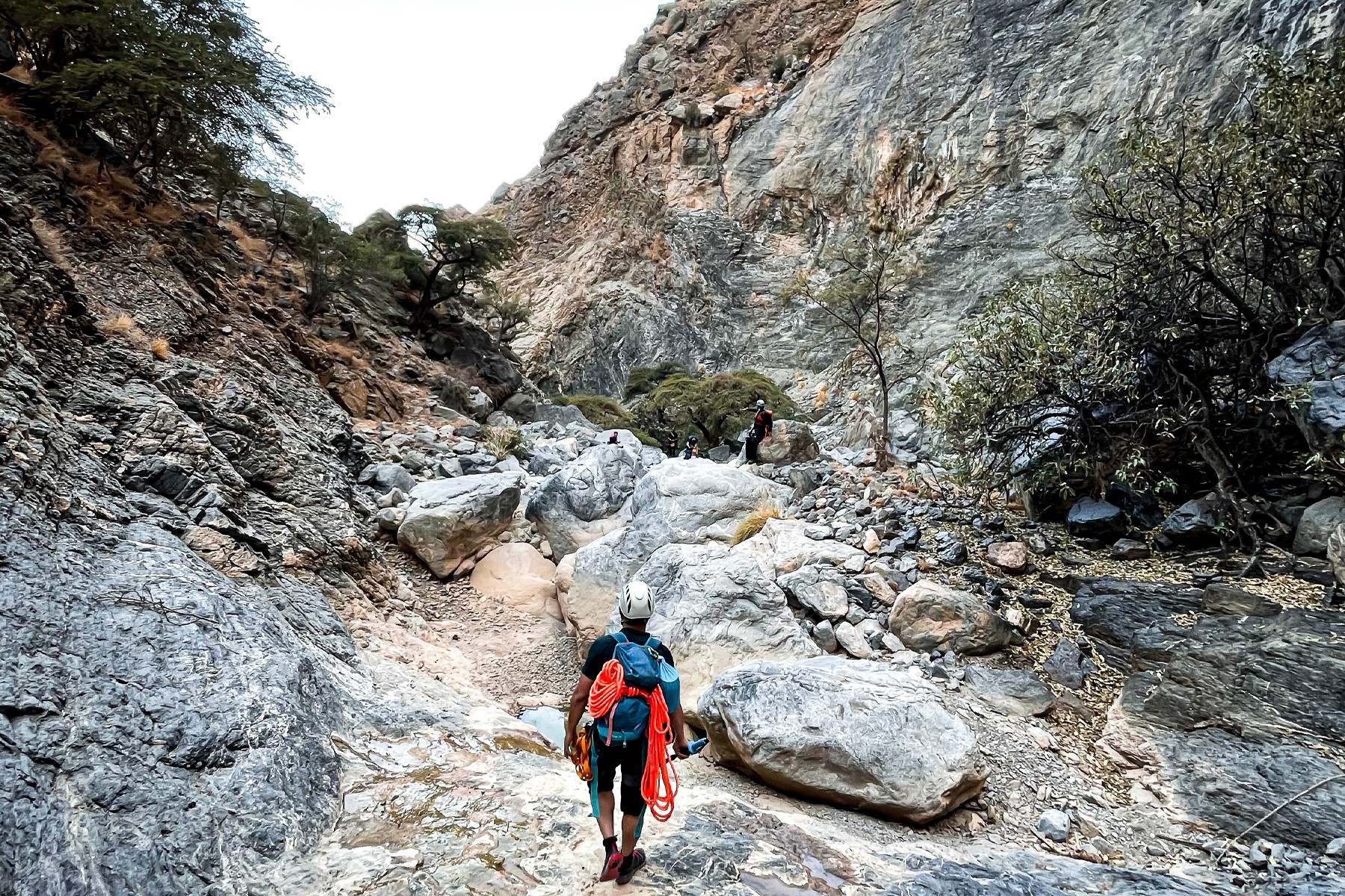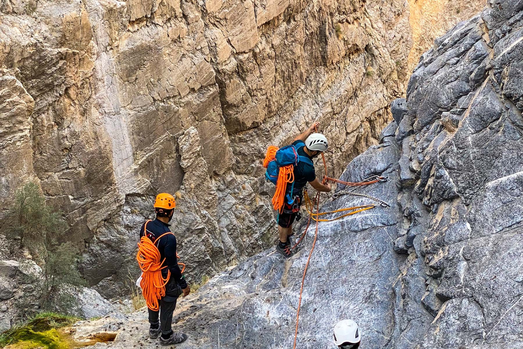 We start our adventure by camping the night at the village of Safa al Sahra uo Jabel Al Akhdar mountain. In the morning we will pack our things and make our way down the steep hike through Wadi Qasha. There are no shortage if abseils here ranging from 10 to 60 meters in length. Not to forget the gorgeous views of the mountains and the pools. The hike ends with a long trail where you can reflect on your amazing adventurous day.