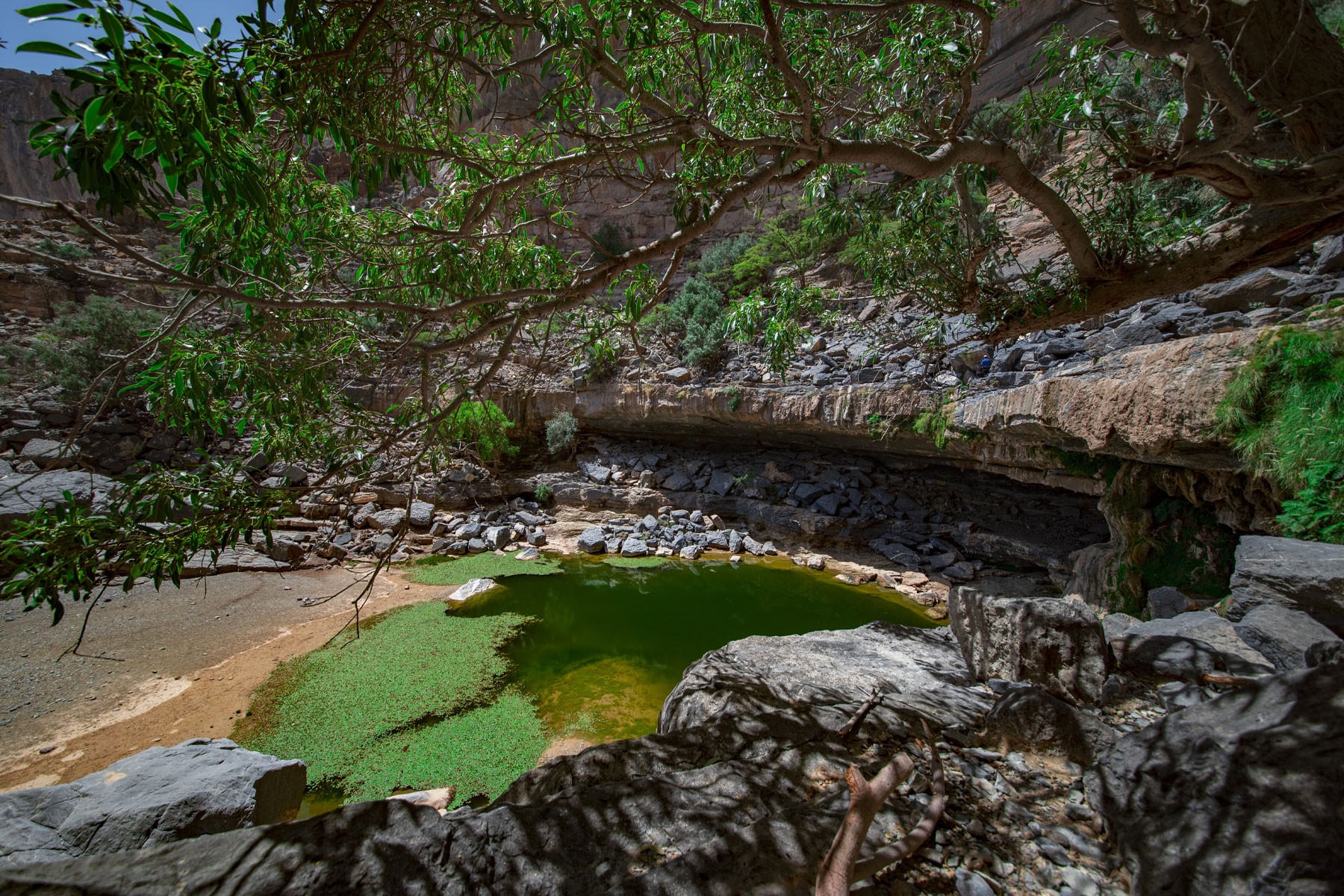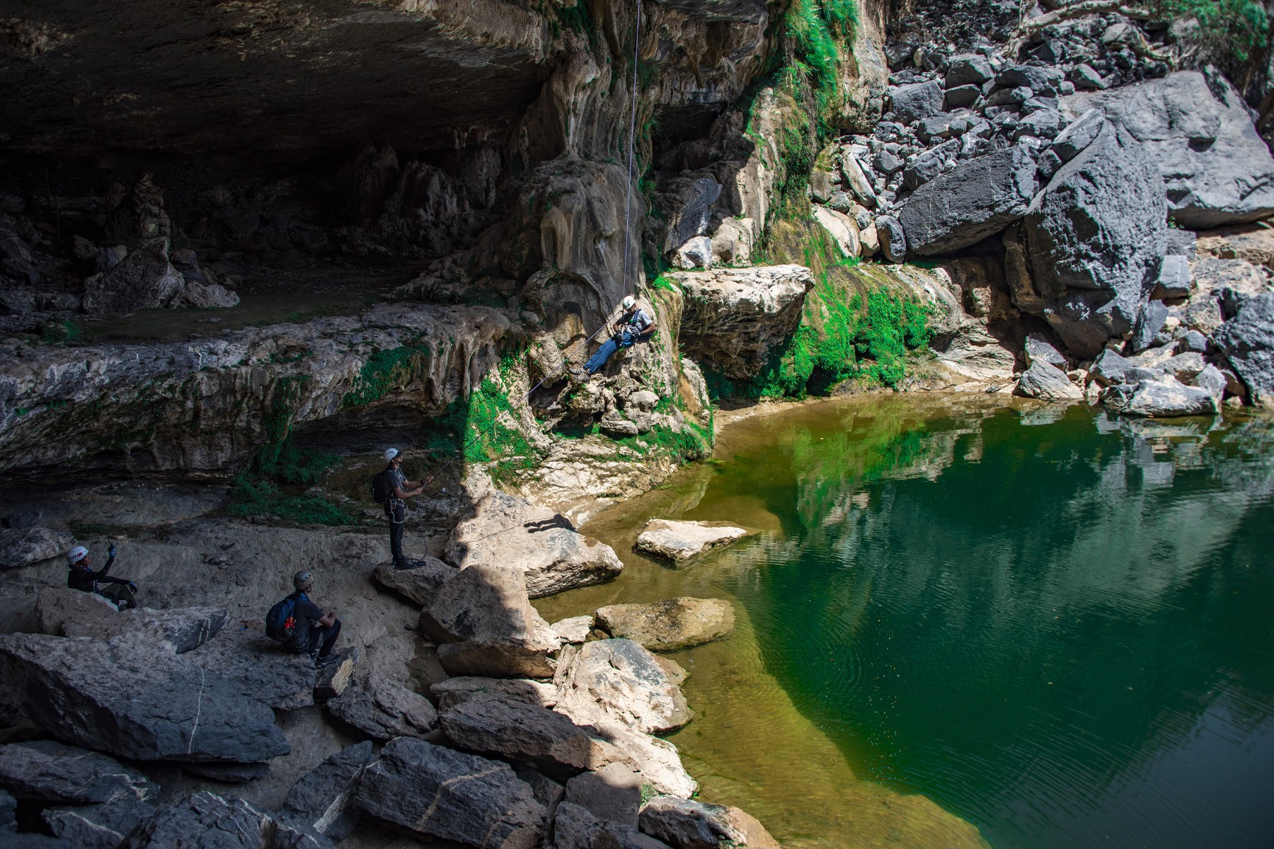 We will start the adventure in Jabel Shams at 8:30 AM from the beginning of Saab Bani Khamis. We will pass by the abandoned village of Saab. From there we will go to the hidden pool to enjoy the place & have a break, we will abseil 20 meters above the pool for whoever is interested & want to challenge his/her fears (optional). Then we make our way back the same way to the cars .