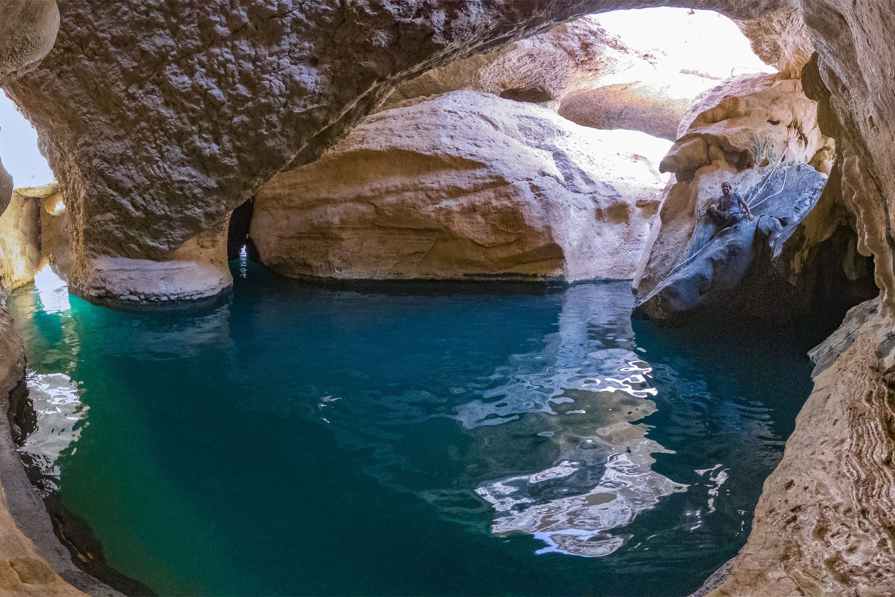 We will start the adventure at 8:30AM at Wadi Shab taking a boat from the south bank to the north bank, then we will hike past farms and freshwater pools. At the end of our hike we will require to swim through a cave where we will spend some time enjoying the marvel of the place. If you are a fan of cliff jumping, there are a few jumping spots inside the cave. Once done we will make our way back to the cars.Then we will take a break and have lunch. Once we are done with lunch we will make our way to the Sink Hole, then head back to Muscat.