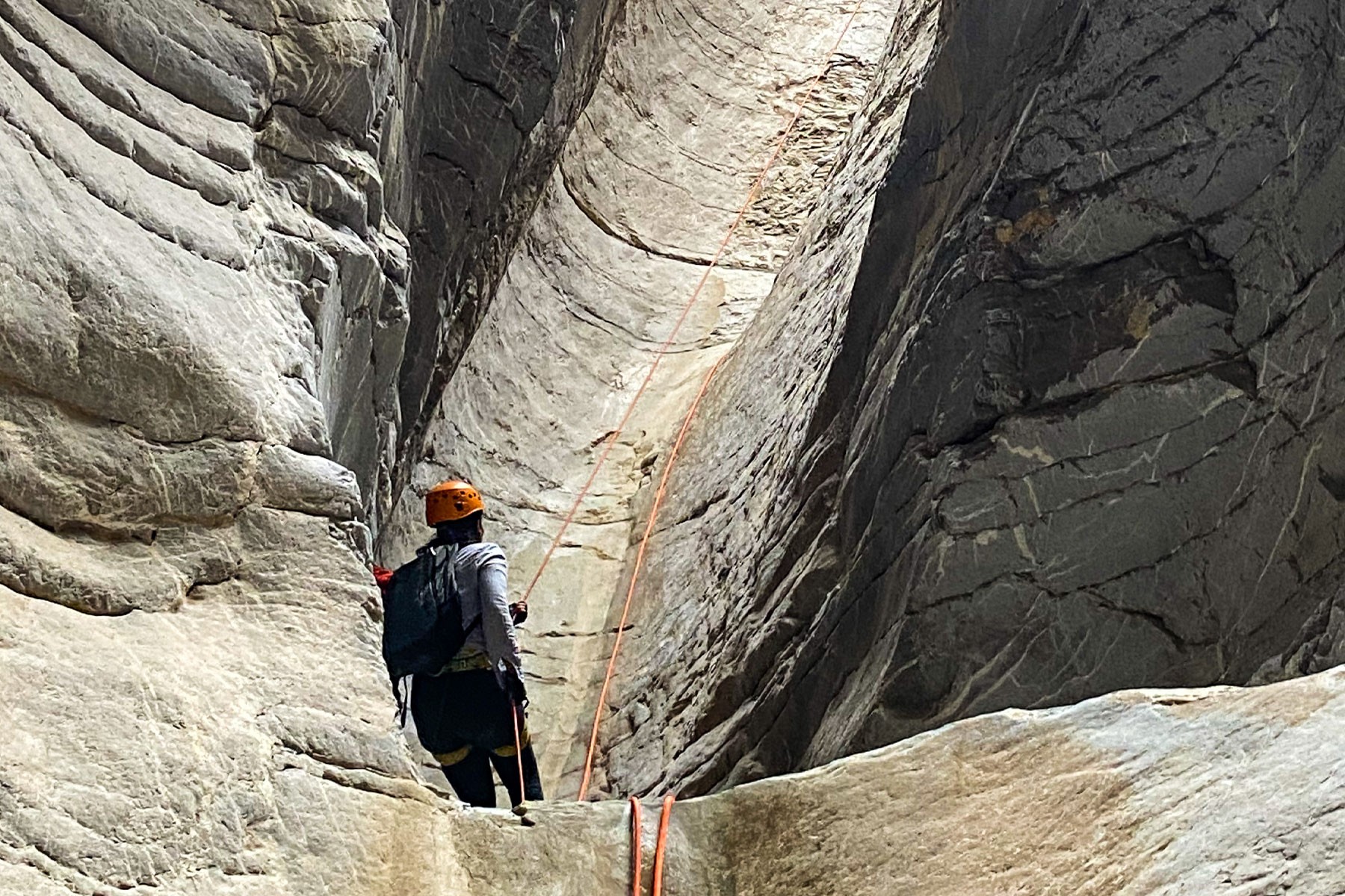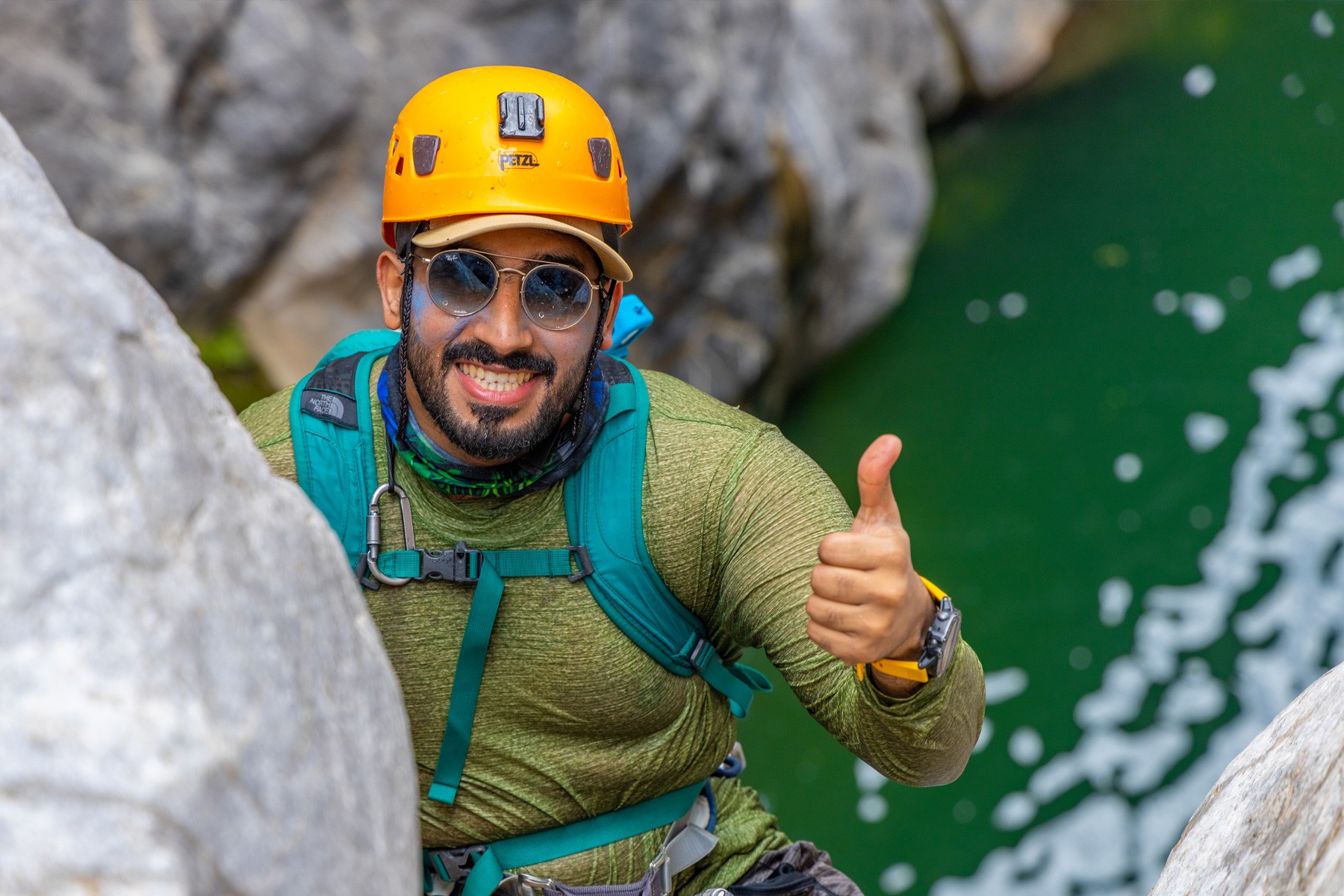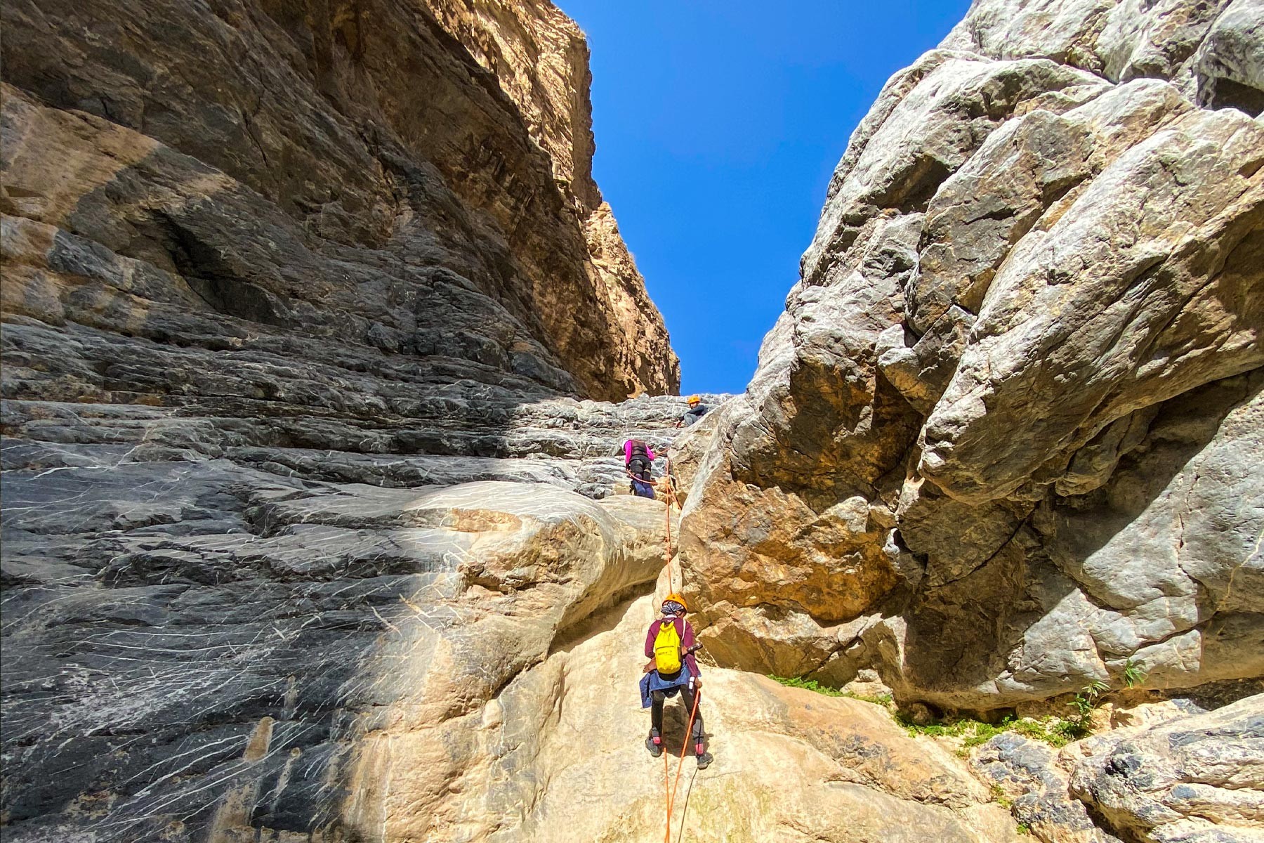 We start our adventure by camping the night at the village of Safa al Sahra uo Jabel Al Akhdar mountain. In the morning we will pack our things and make our way down the steep hike through Wadi Qasha. There are no shortage if abseils here ranging from 10 to 60 meters in length. Not to forget the gorgeous views of the mountains and the pools. The hike ends with a long trail where you can reflect on your amazing adventurous day.