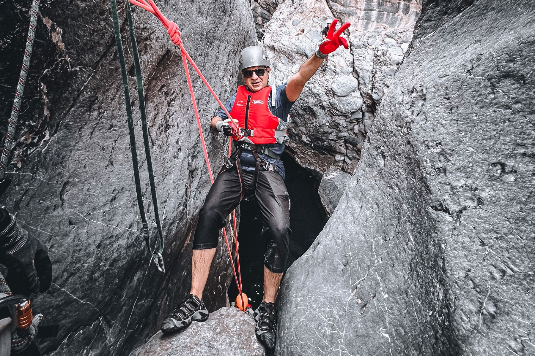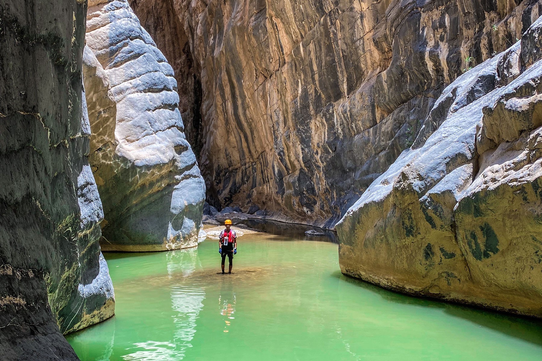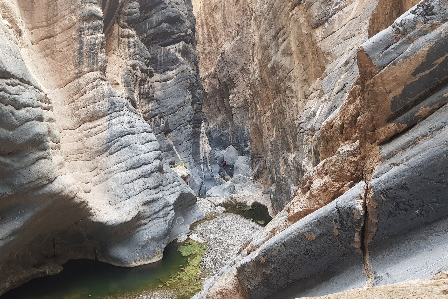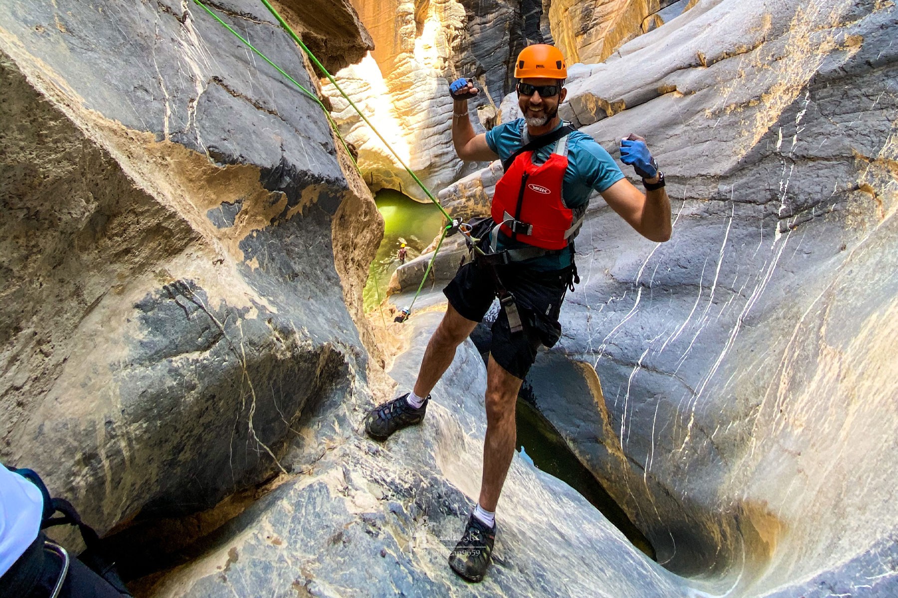 Snake Canyon or Snake Gorge has been given that name because of its winding gorge that looks like a snake from above. It is known for its cool water which is pleasant during the summertime. The adventure starts from Wadi bani Awf (Snake Canyon) which is known for its freshwater pools, cliff jumps and its dark cave which sometimes requires us to swim through it. The adventure stores 3 abseiling points with heights from 6 meters to 24 meters. The hike continues until the village of Al Zamah.