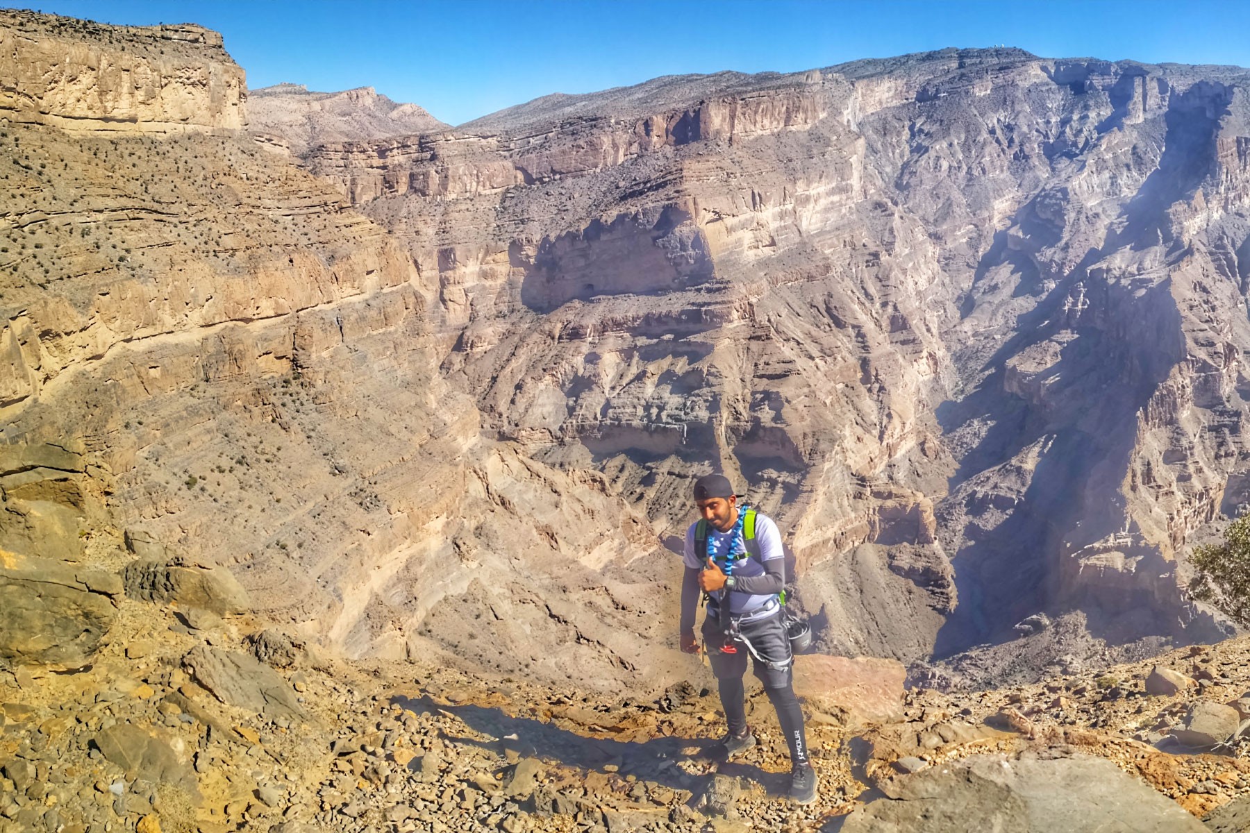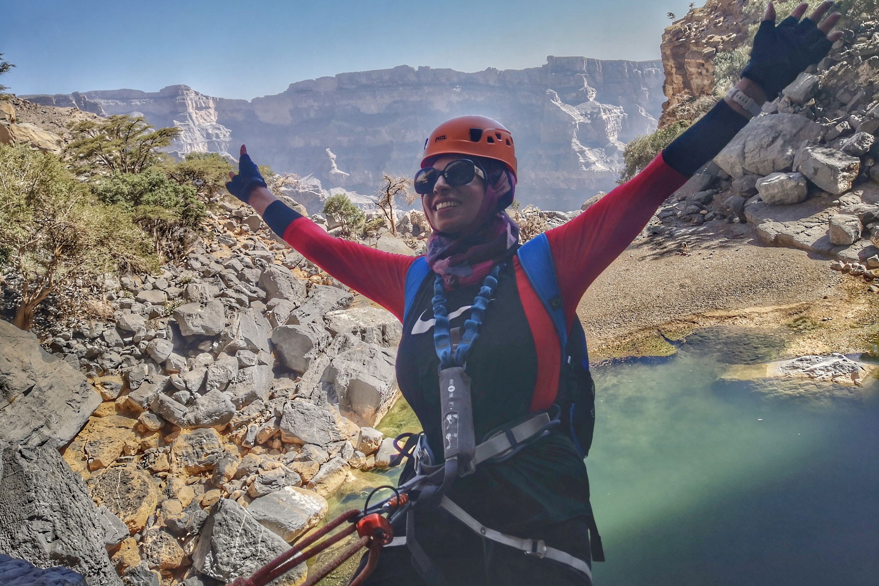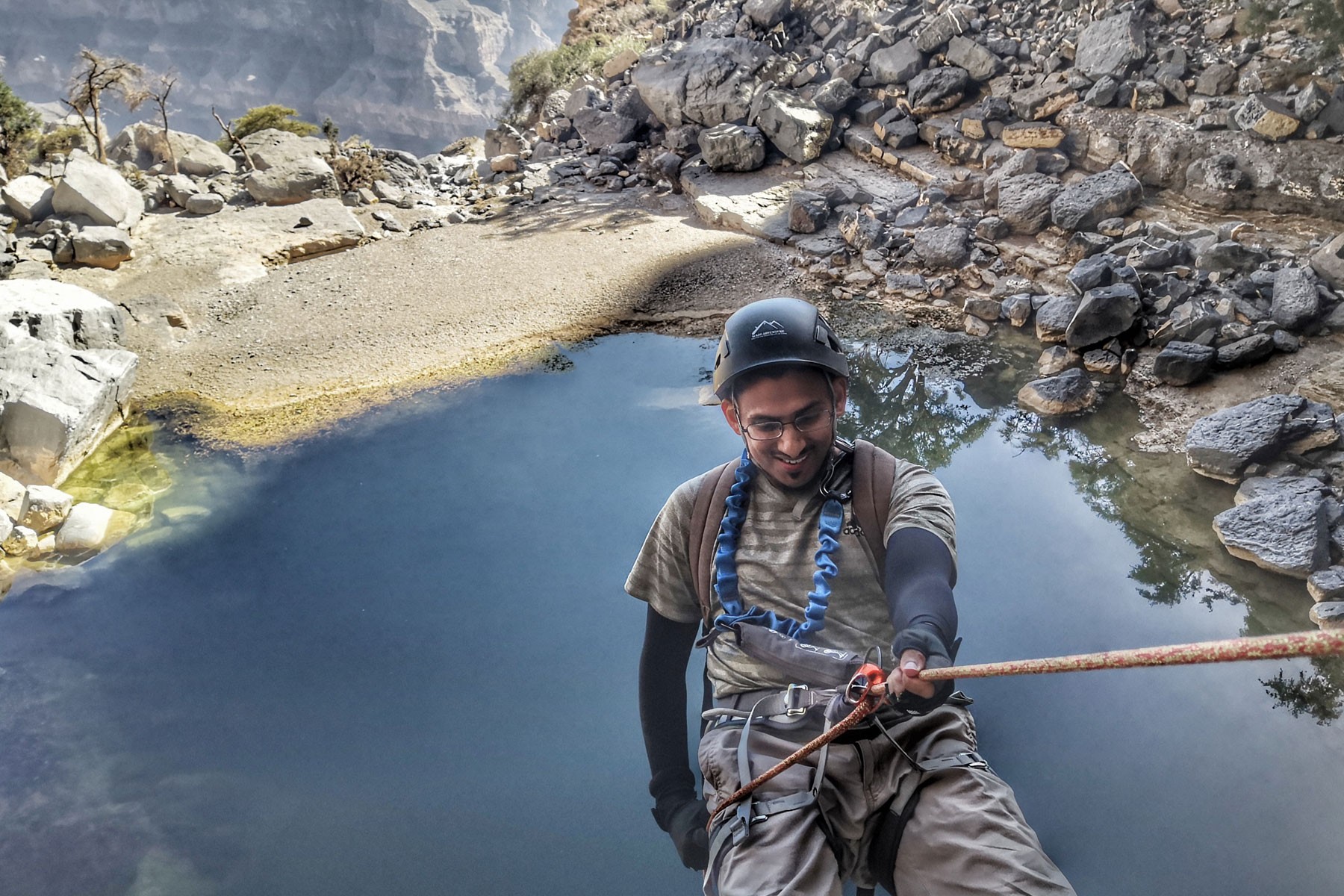 We will start the adventure in Jabel Shams from the beginning of Saab Bani Khamis. We will pass by the abandoned village of Saab. From there we will go to the hidden pool to enjoy the place & have a break, we will abseil 20 meters above the pool for whoever is interested & want to challenge his/her fears (optional). Then we will go up 200 meters to the iron way (via Ferrata) to climb up 400 meters back to the cars which is 1 km after the climb.