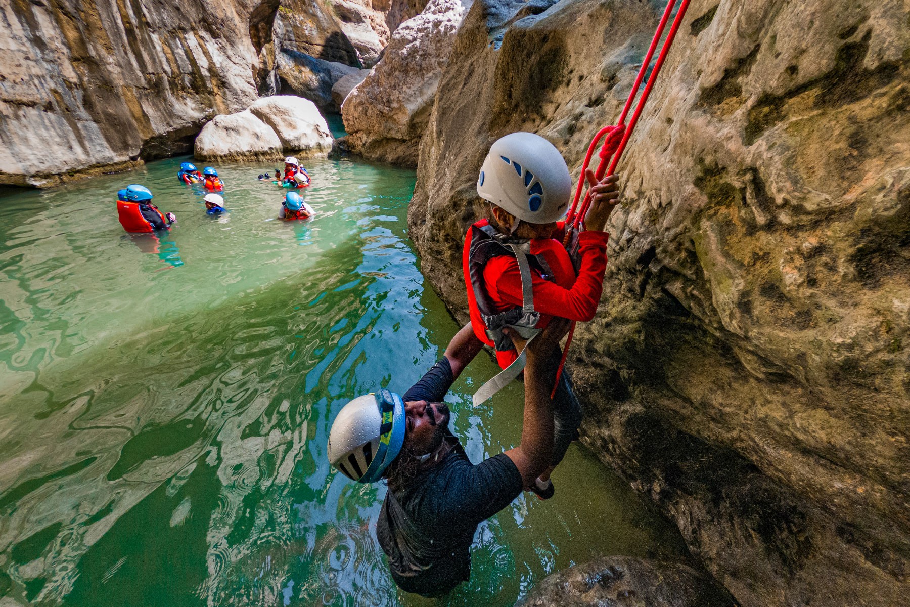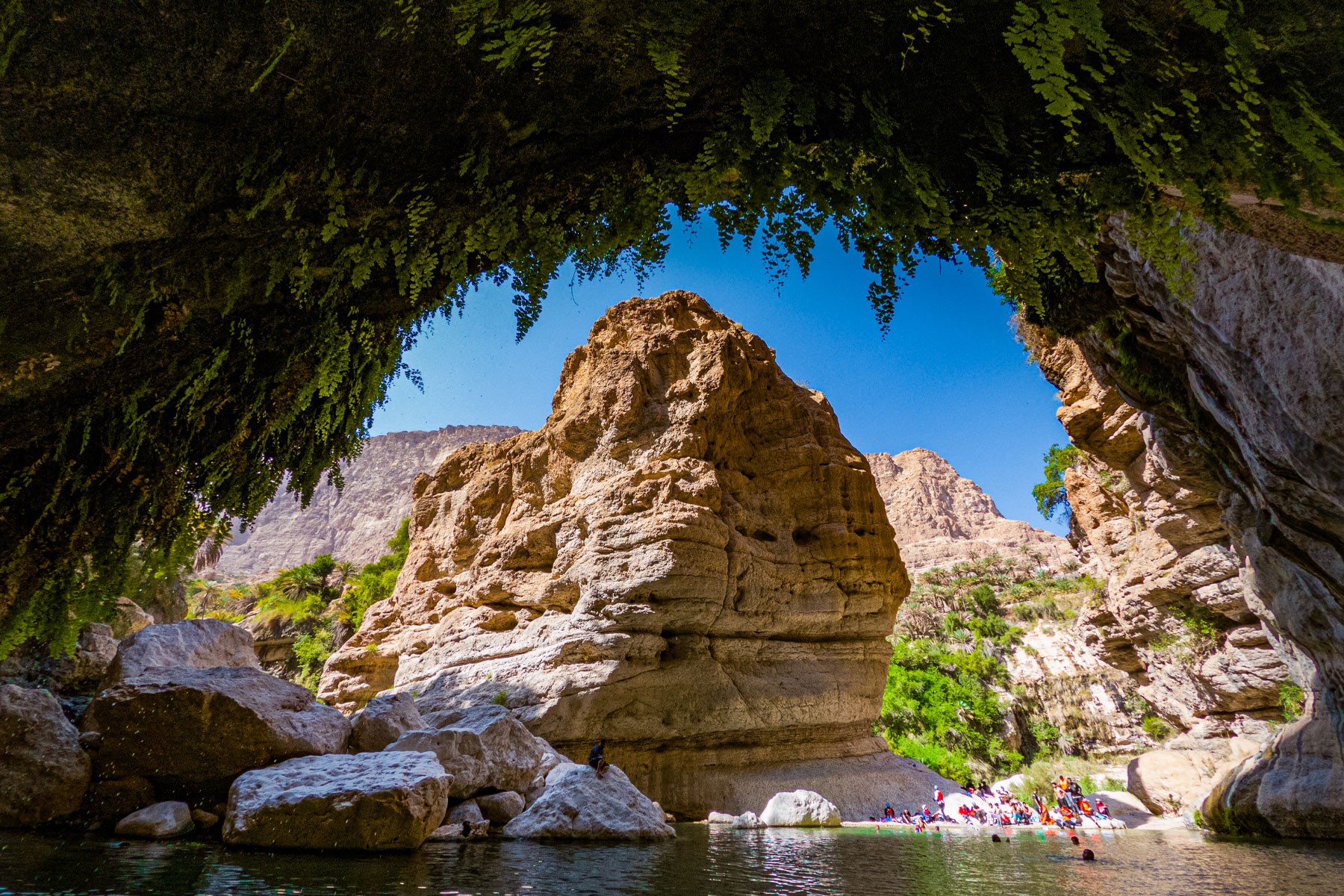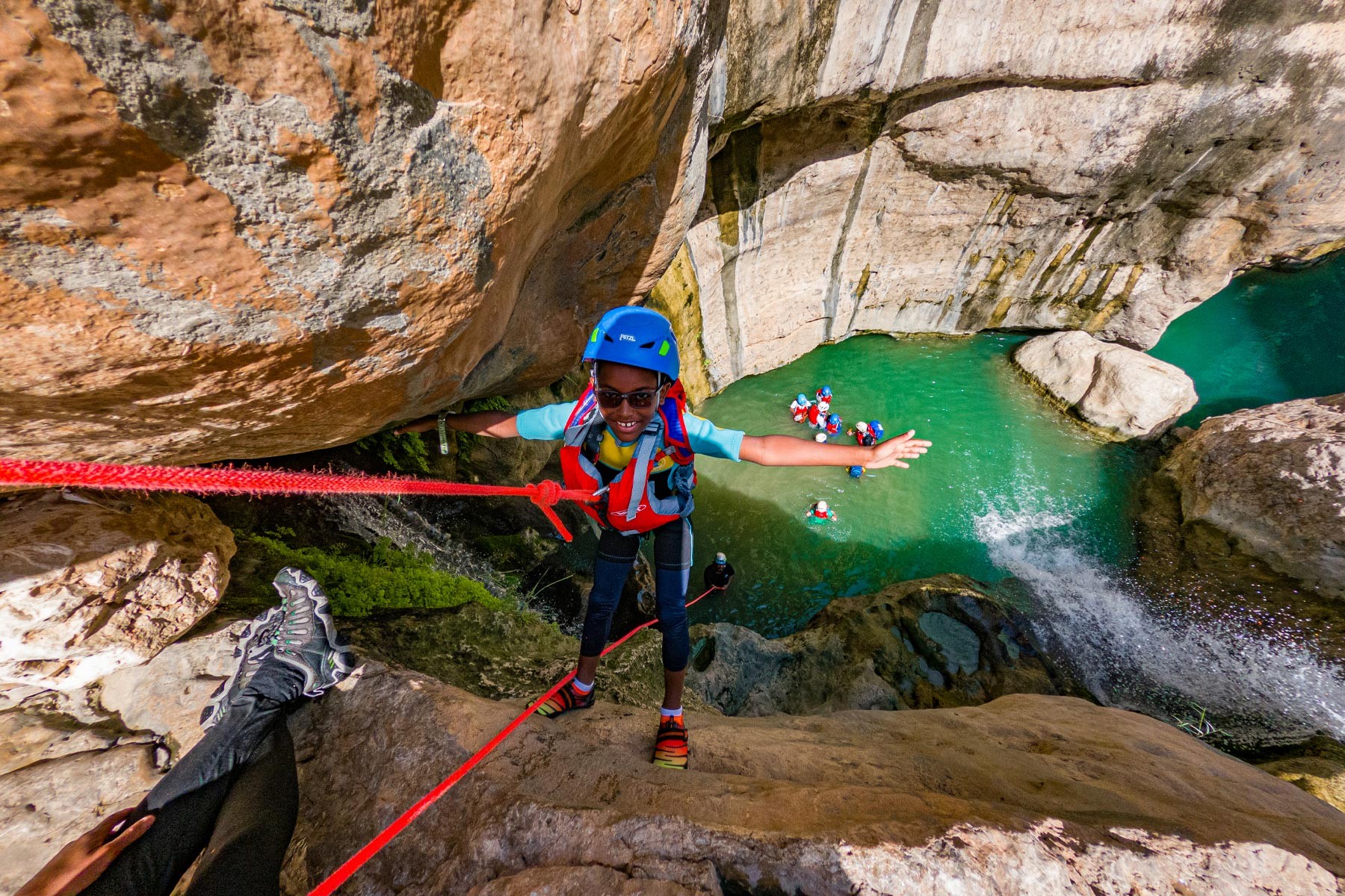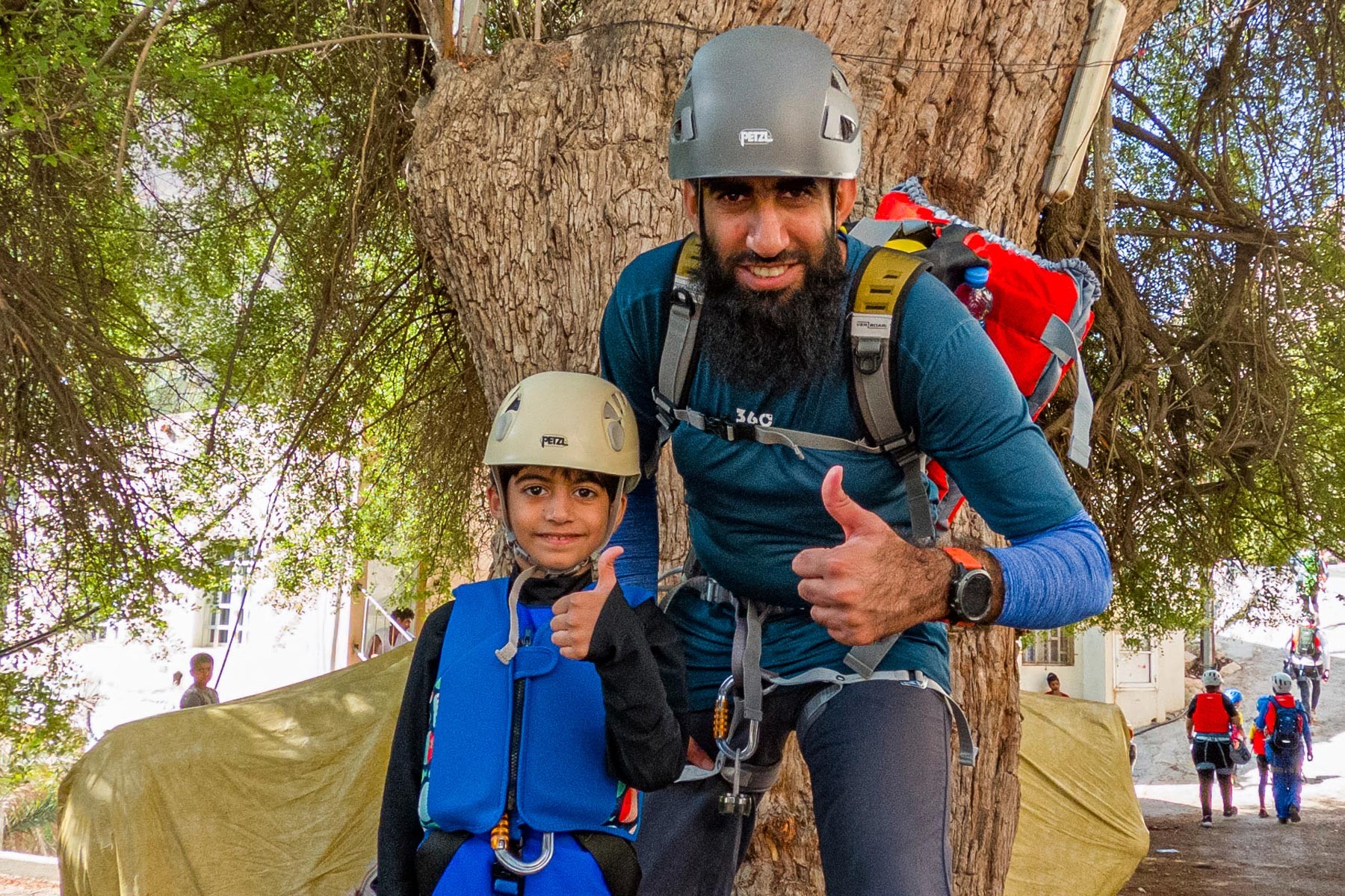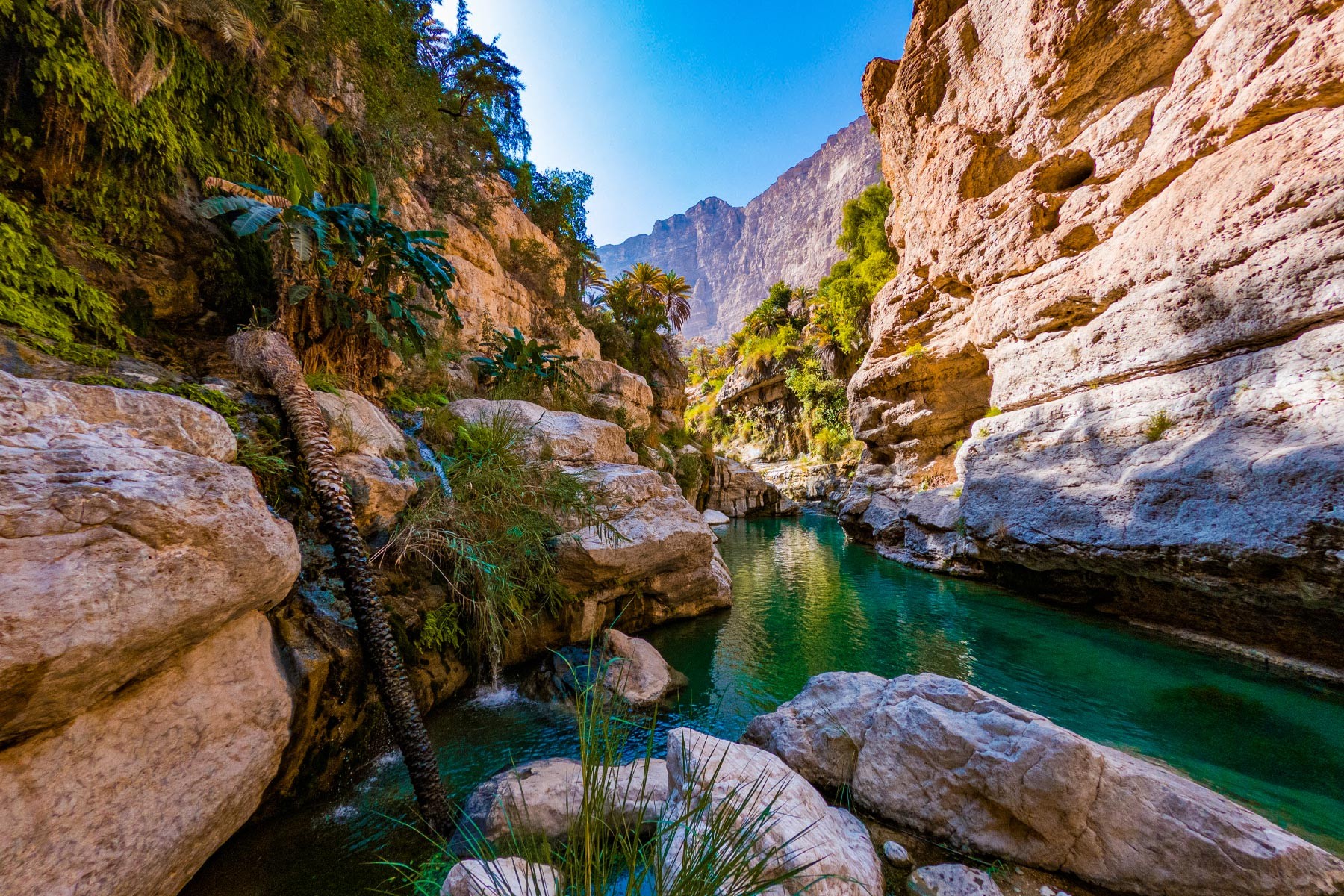 We will take the roads between the mountains passing through many farms and spectacular views to the start of our adventure in the village of Mibam. We will then hike our way through the charming village which has old stone houses and green lush farms. Once we get to the waterfalls, we will abseil 15 meters followed by a second abseil of 7 meters, that will take us to the beautiful lakes of Wadi Mibam. Here we will swim about 50 meters in an area that will make you forget where you are. We will take a break here and enjoy the swim. Try taking in the beauty of the clear water, lush greenery and huge valley. After that we will make our way up the farms to our cars.