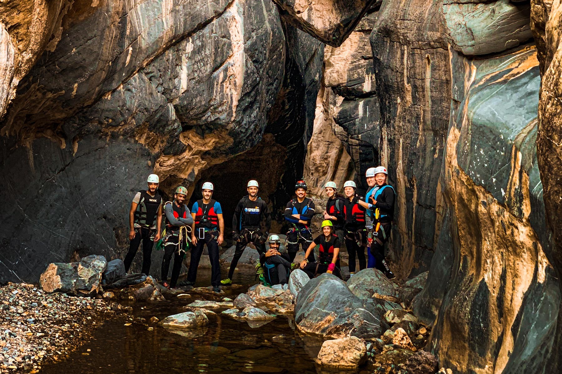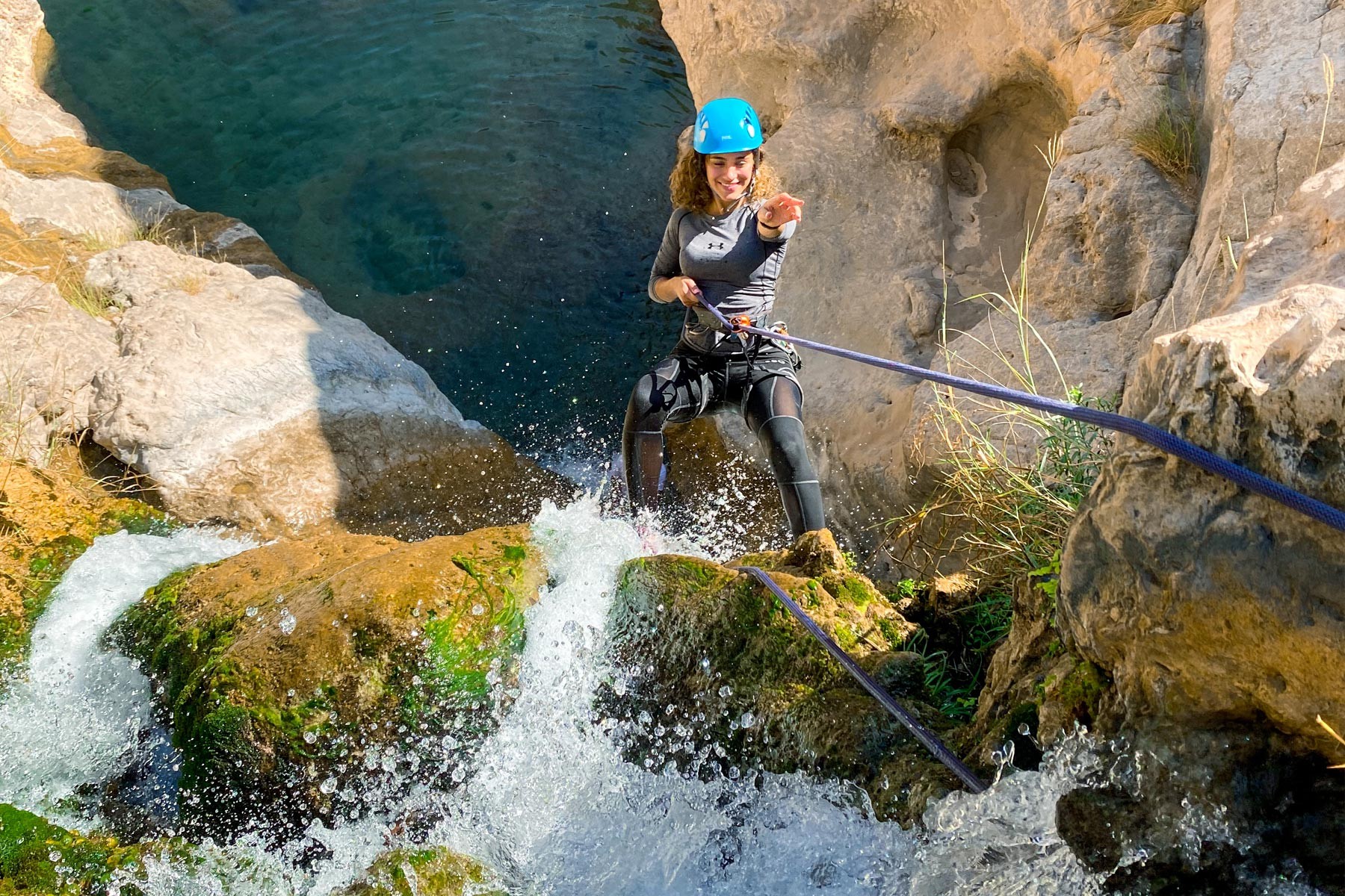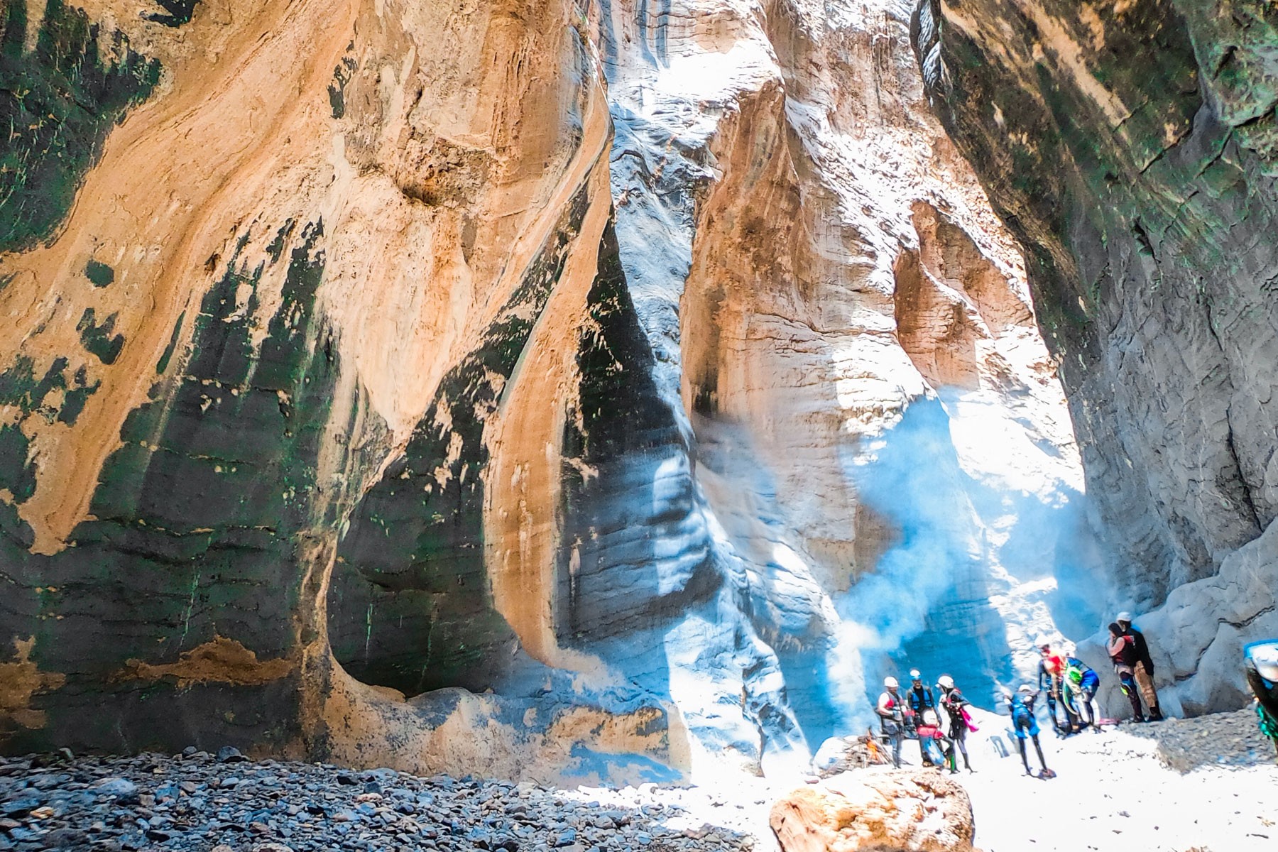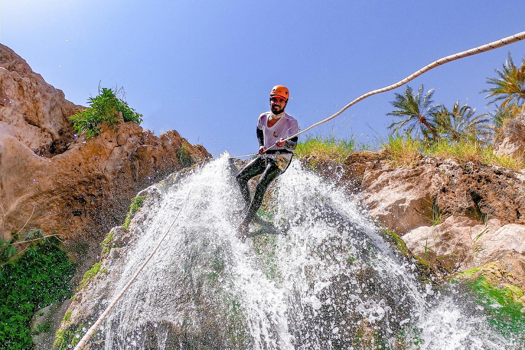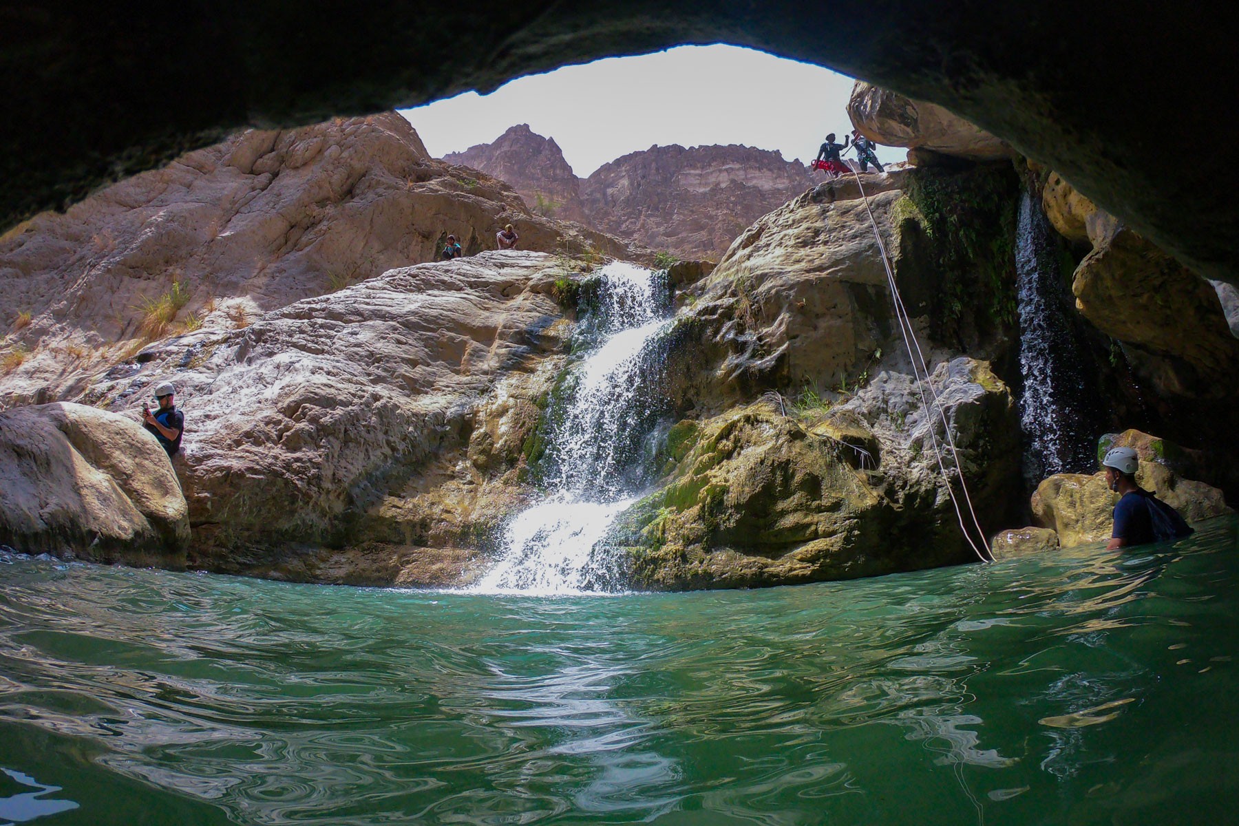 We will take the roads between the mountains passing through many farms and spectacular views to the start of our adventure in the village of Mibam. We will then hike our way through the charming village which has old stone houses and green lush farms. Once we get to the waterfalls, we will abseil 15 meters followed by a second abseil of 7 meters, that will take us to the beautiful lakes of Wadi Mibam. Here we will swim about 50 meters in an area that will make you forget where you are. We will take a break here and enjoy the swim. Try taking in the beauty of the clear water, lush greenery and huge valley. After that we will make our way up the farms to our cars.